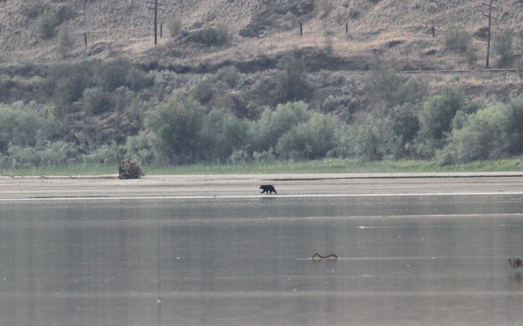 A very eventful morning at Tranquille. While looking again for the Long-tailed Jaeger reported there a few days ago (I was able to see that last week), I noticed a different Jaeger land very far away and then float down the river preening. After a couple of minutes it lifted off the water and flew steadily in one direction. I snapped a few photos and somewhere between looking through my camera and spotting scope it disappeared. Maybe it suddenly changed directions or something but I could not relocate it for the life of me. I stayed at the spot for 2 hours but it never returned. After some valued opinions from others, it was confirmed as a Parasitic Jaeger. A life bird for me. While waiting for it to reappear, I noticed a Black Bear walking the opposite shore. This bear, together with the single Coyote, Mule Deer, and pair of Beavers, made for a mammal filled morning as well as the birds. Mammals follow the birds below.