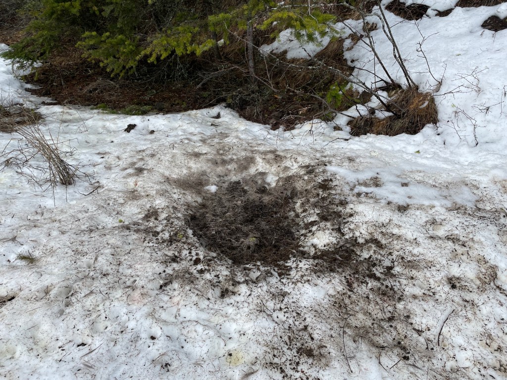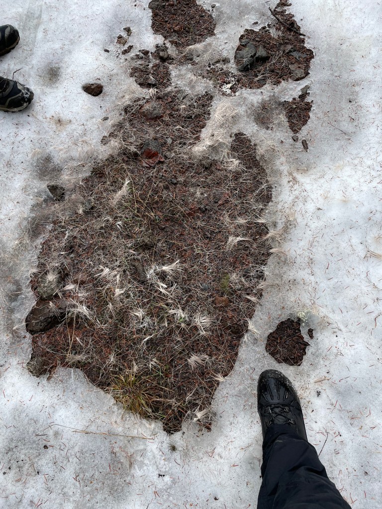 Isaac showed me the Opax Mountain hiking trail today leaving from the north side of Lac du Bois (the lake, not the grasslands protected area). The trail moves of level open ground for the first 30 minutes or so and then turns up the mountain into the forest. It climbs steadily up but the grade is very nice for walking as it follows an old road. It was a fantastic time in the outdoors. We hiked from roughly 9:00am-2:00pm stopping wherever there was something to see. In the end we reached approx. 300-400 m past the top cattle guard where it levels out at the top.